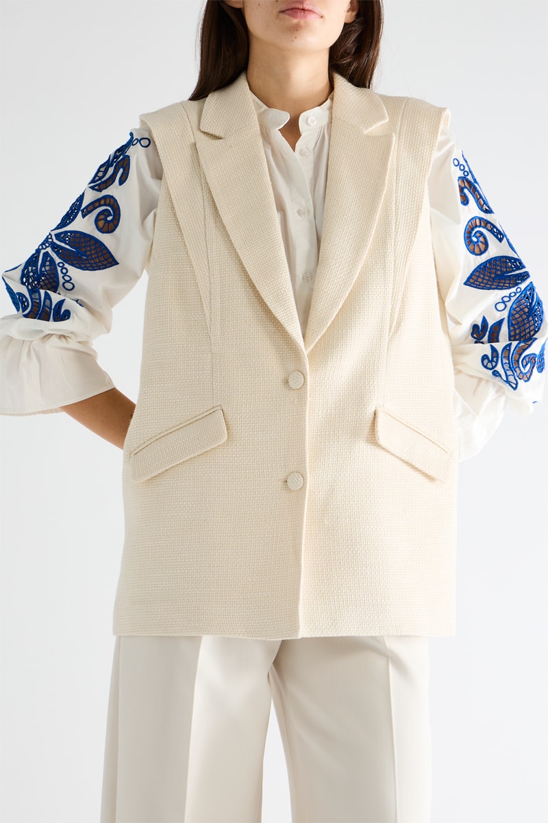 Composición: 64 % algodón, 23 % viscosa, 10 % poliéster, 2 % fibras metálicas y 1 % elastano