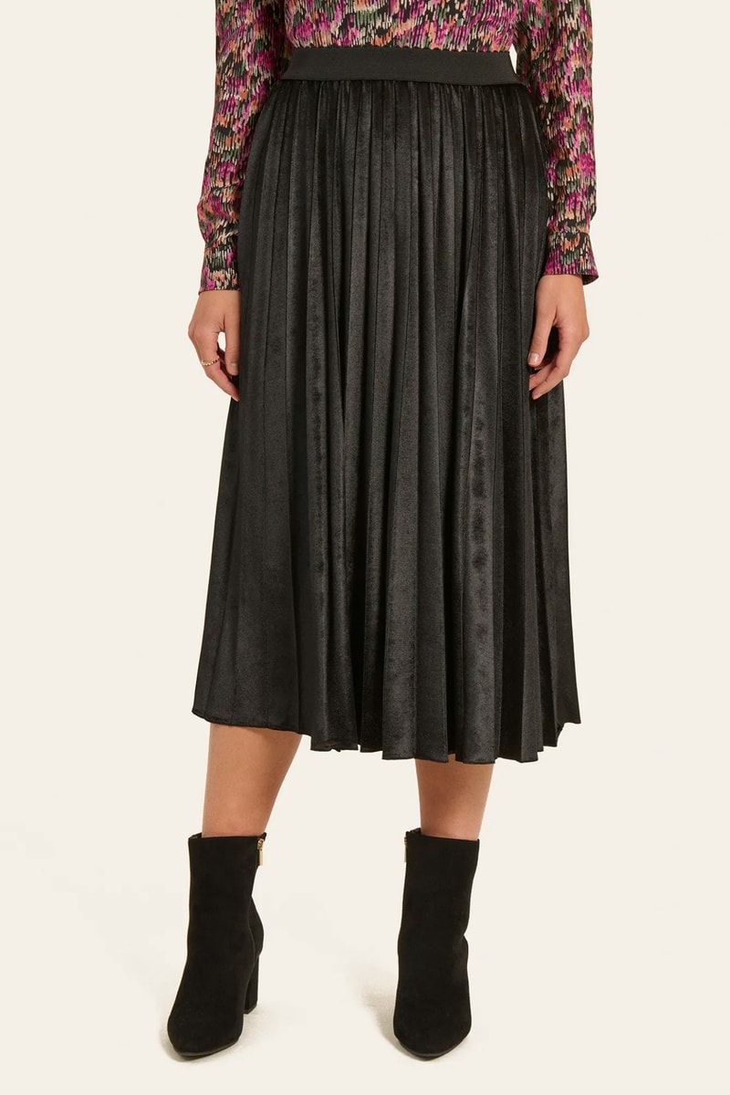 Falda plisada de talle alto - Negro