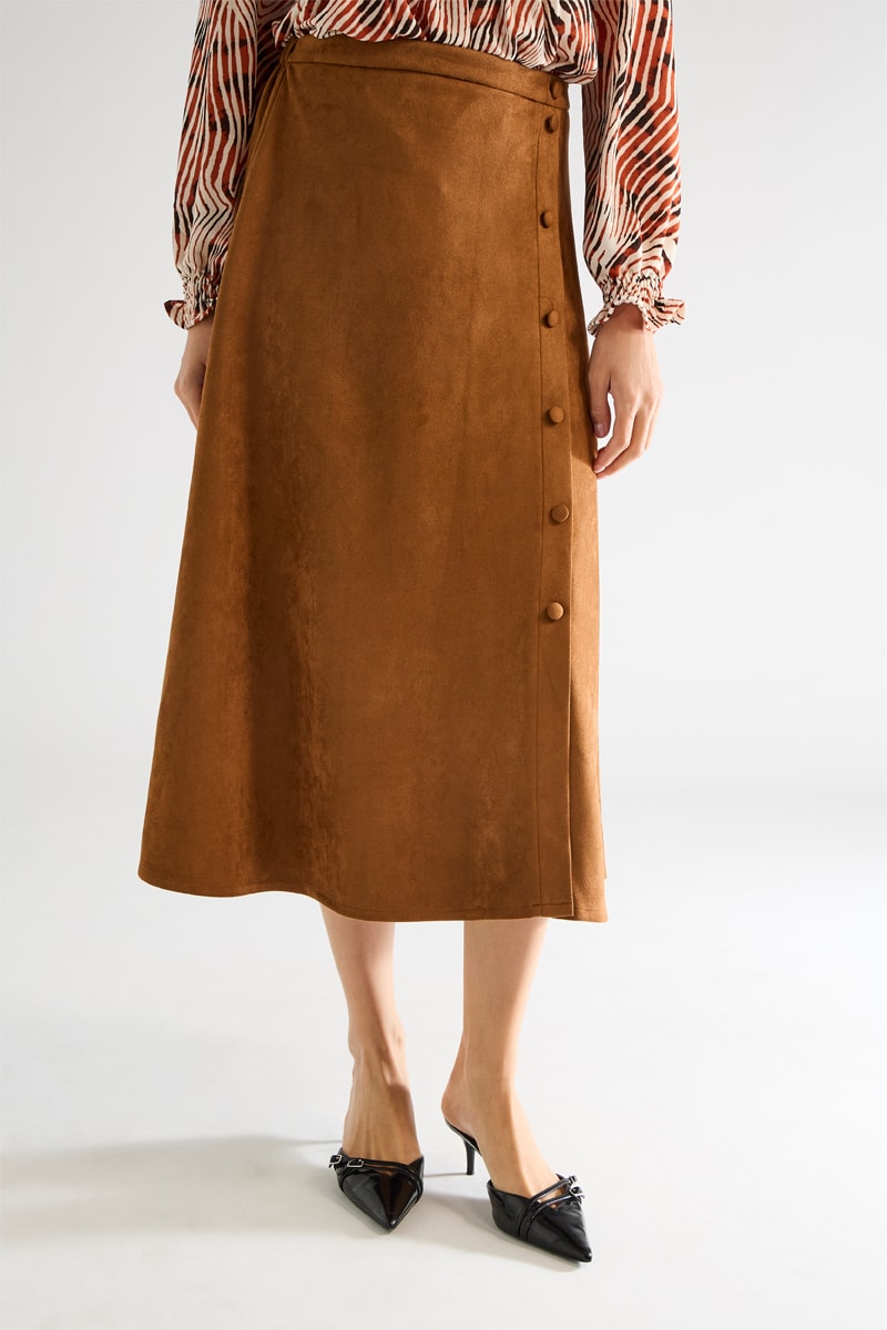 Falda midi de talle alto - Marrón claro
