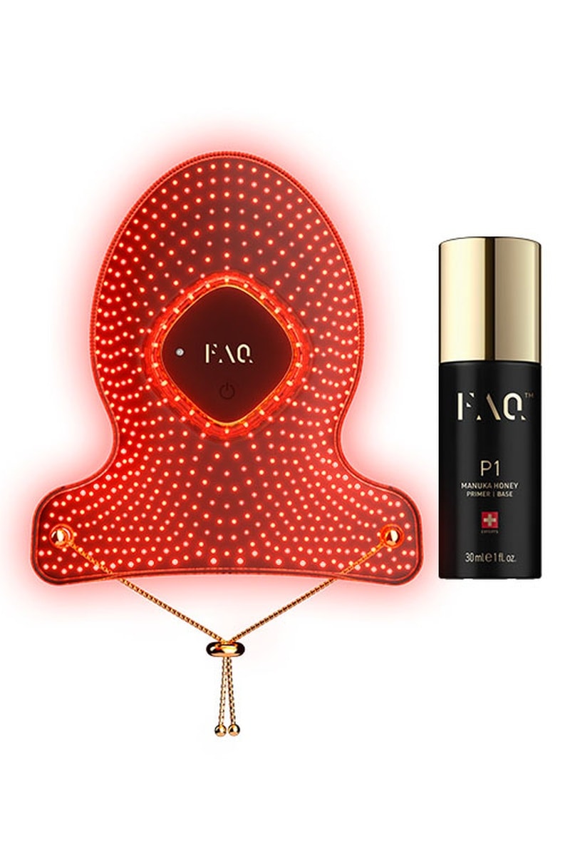 Mascarilla antiedad LED FAQ™ 221 y prebase con miel de manuka para las manos.