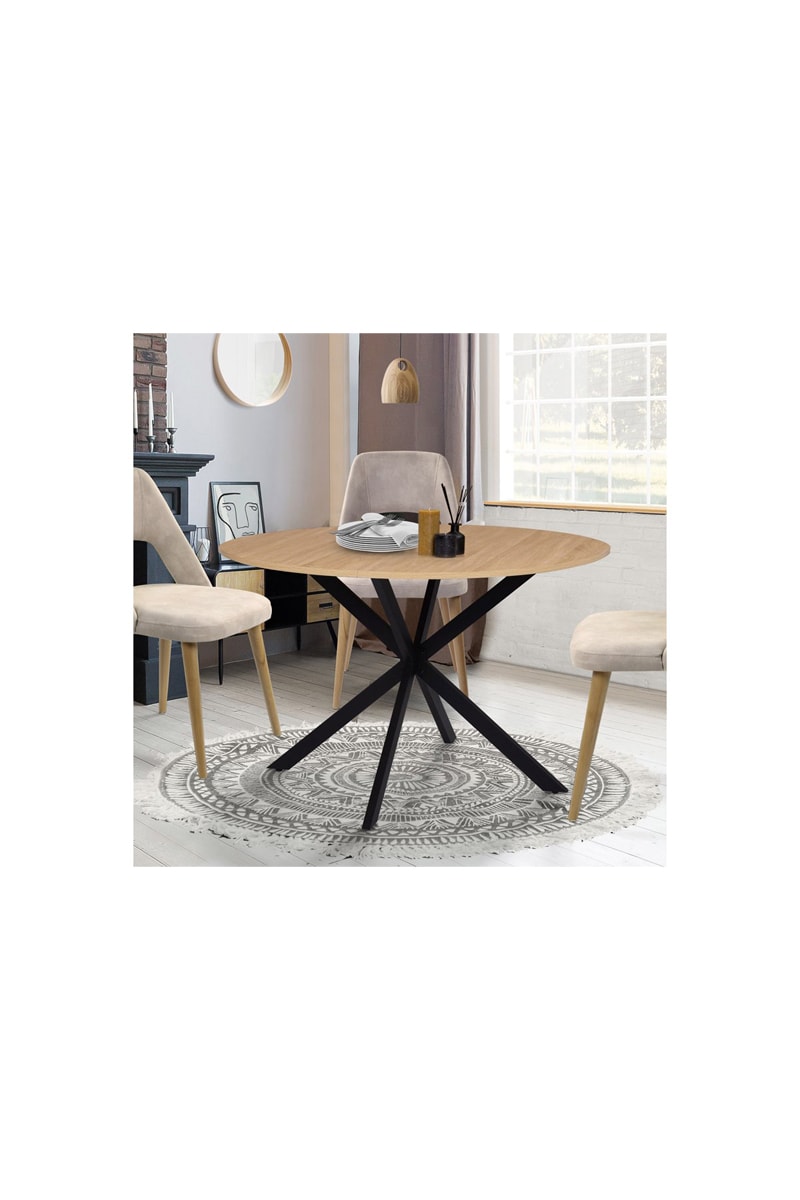 Mesa de comedor Soline - Imitación madera y negro