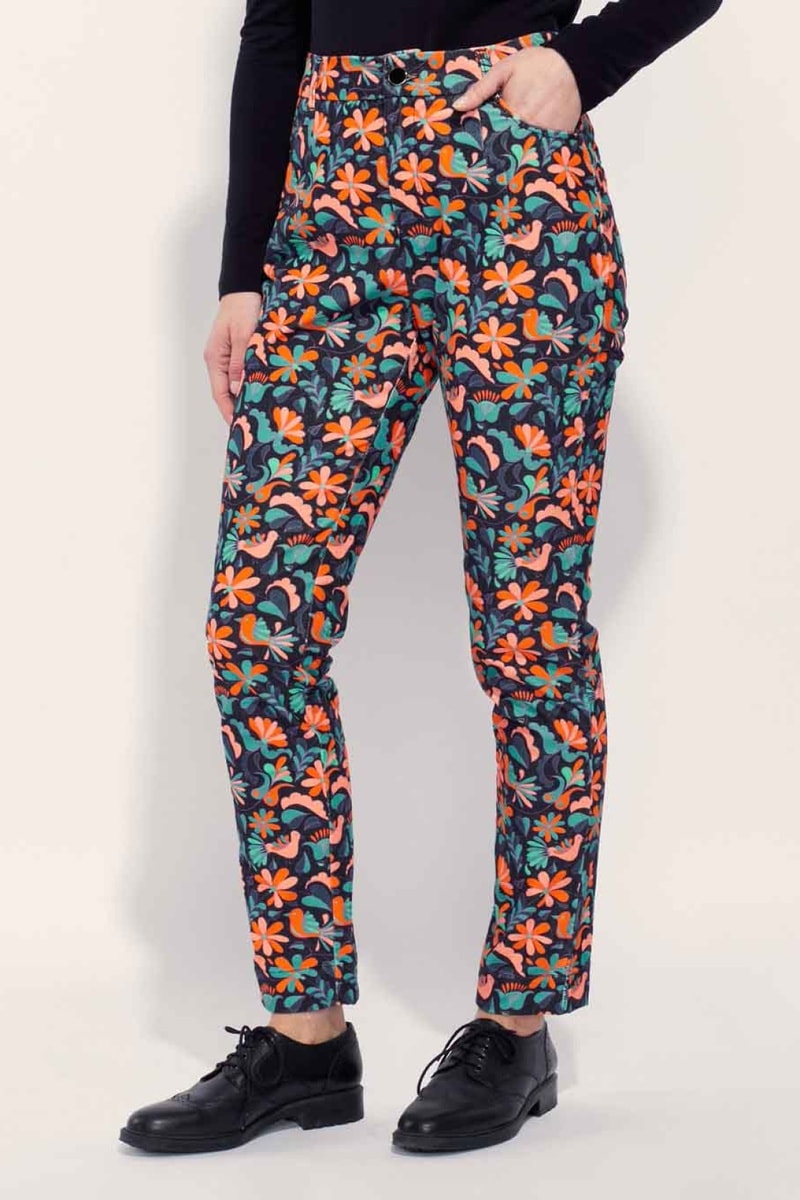 Pantalón de tiro alto de terciopelo Marita - Azul marino y coral