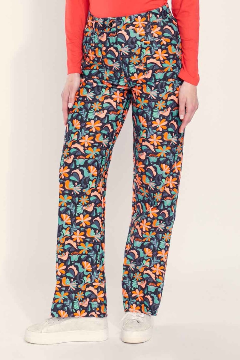 Pantalón de tiro alto de terciopelo Saya - Azul marino y coral