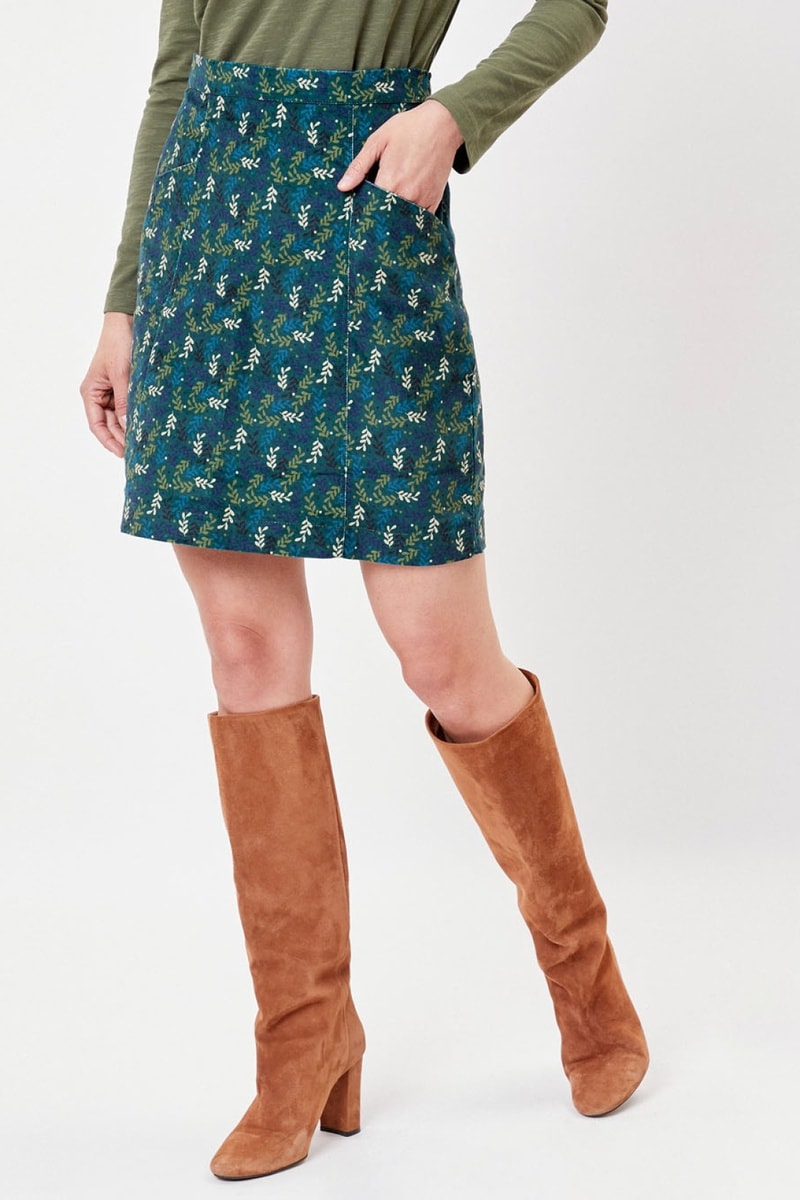 Falda recta de terciopelo Delhi - Verde pino