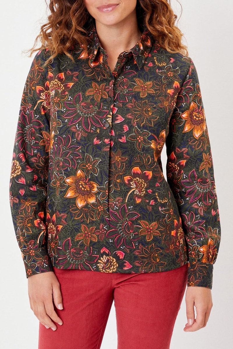 Blusa de algodón orgánico Tjorn - Azul marino y caqui