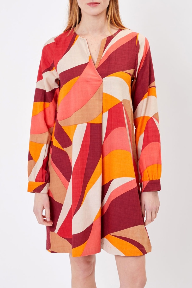 Vestido trapecio de algodón orgánico Hild - Coral y rojo