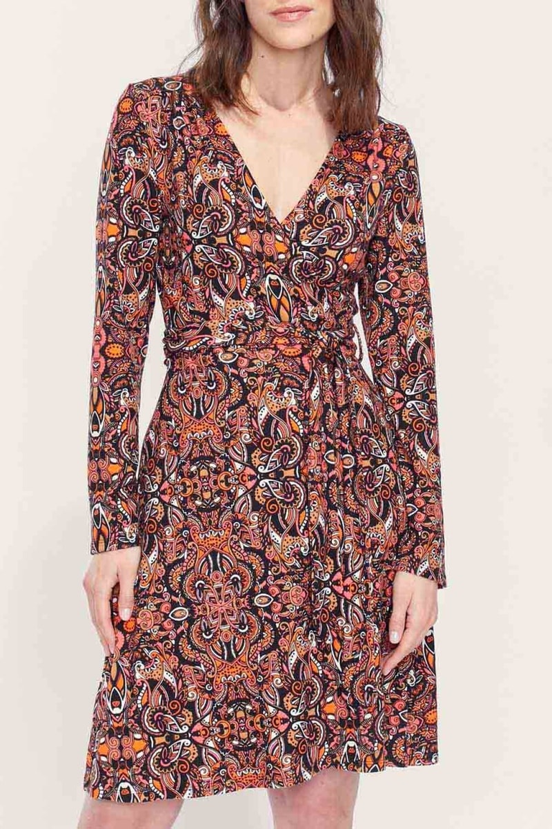 Vestido cruzado Balina - Marrón y negro