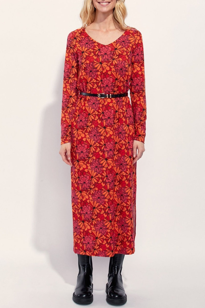 Vestido midi Beela - Rojo y naranja