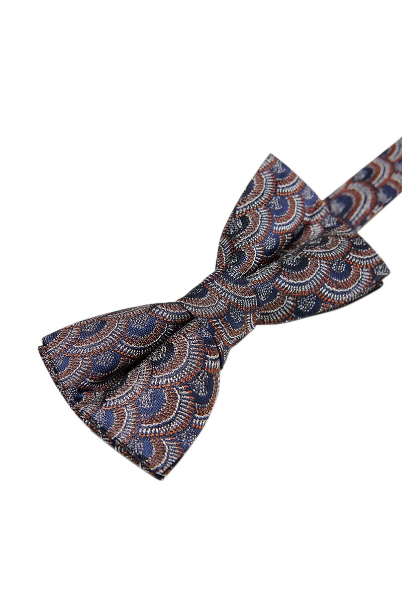 Pajarita de seda - Azul marino y marrón