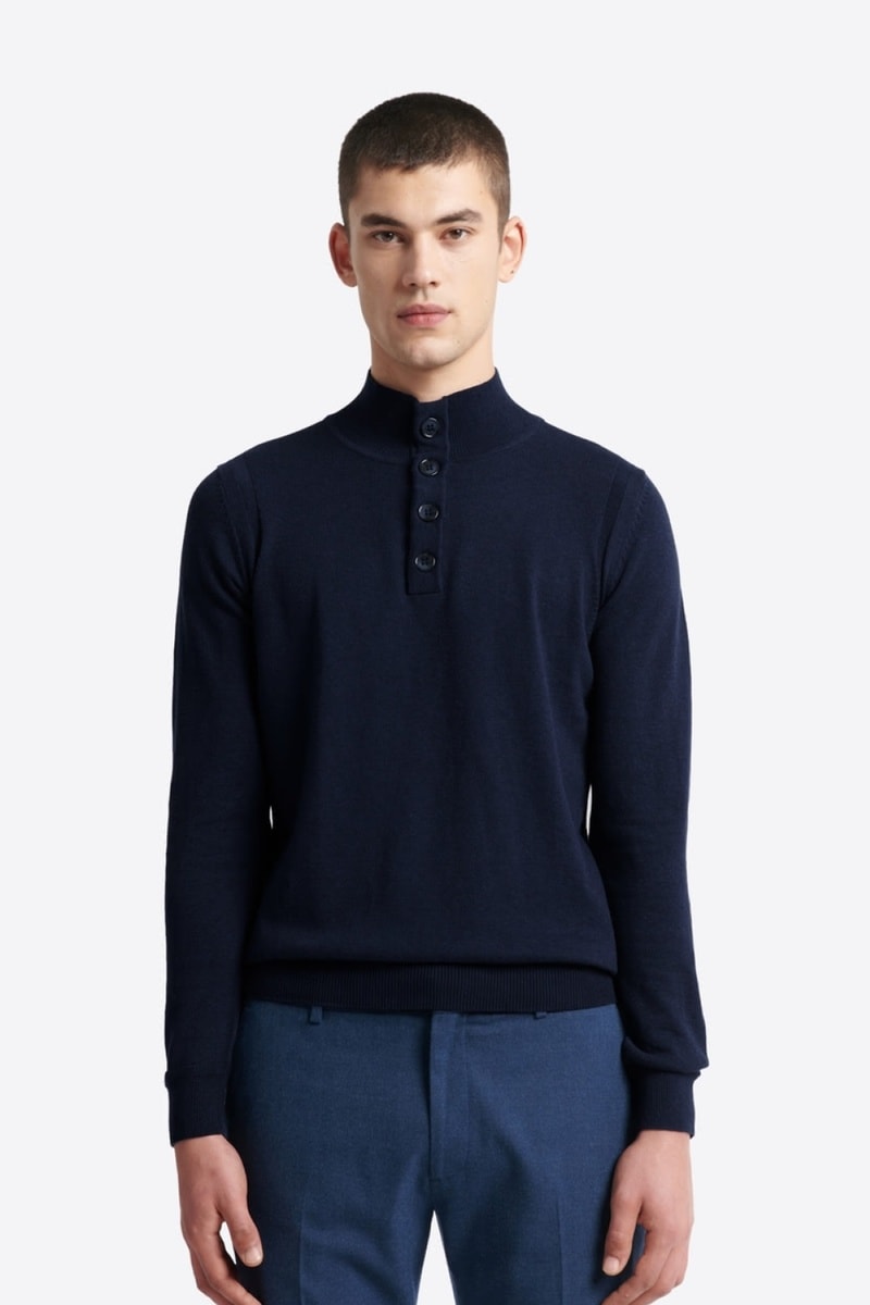 Cuello alto con botón.