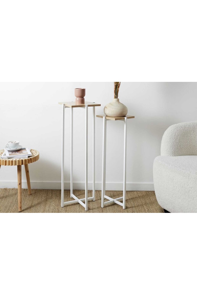 2 mesas auxiliares de madera Loka - 30 x 82 x 30 cm y 25 x 72 x 26 cm