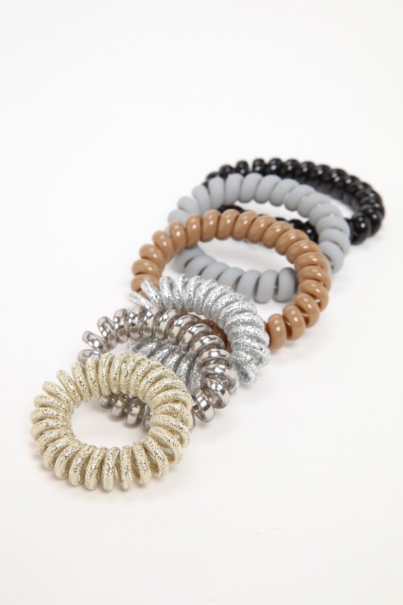 6 gomas para el pelo, 1 de ellas con efecto metalizado y 2 con brillo.