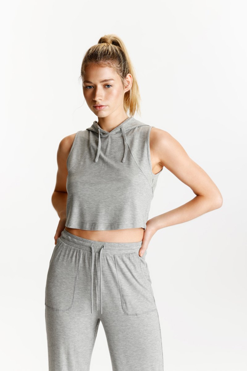 Crop top con capucha - Gris claro jaspeado