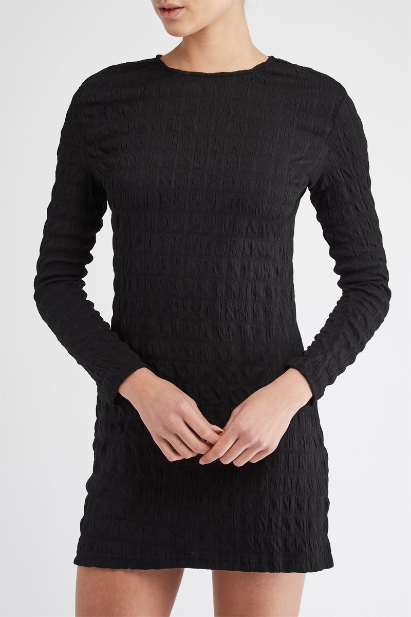Vestido corto de manga larga.