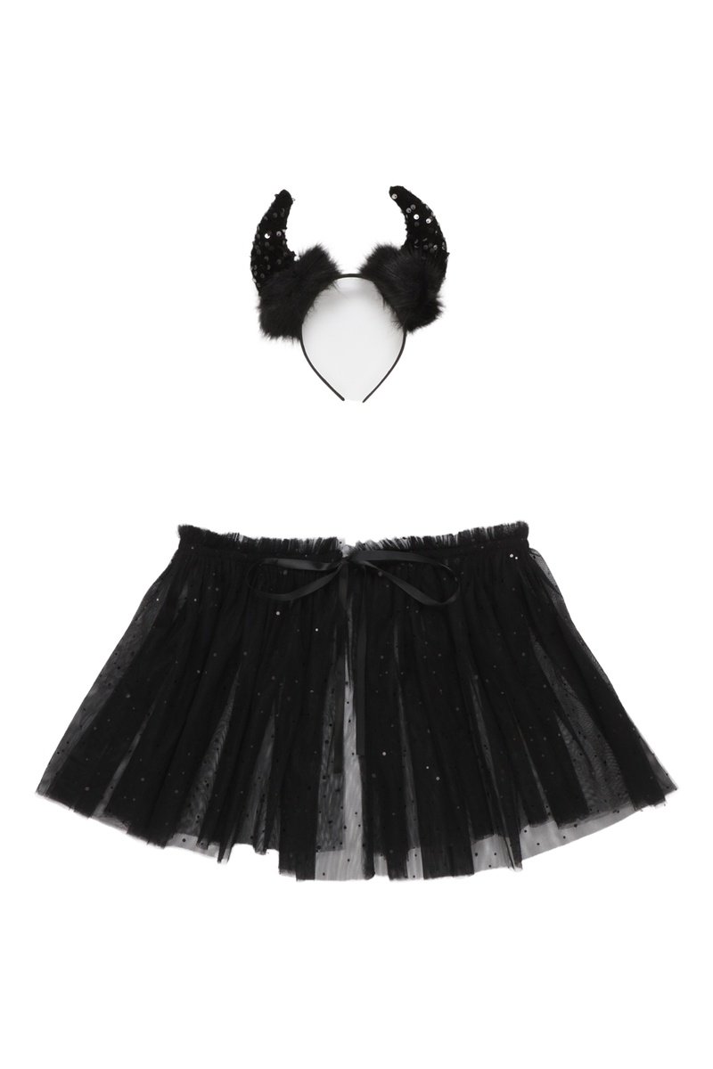 Detalles con forma de cuerno con brillos y pelo sintético.