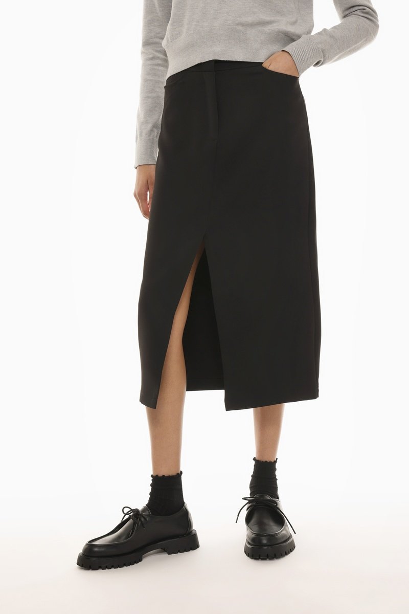 Falda midi de talle alto - Negro