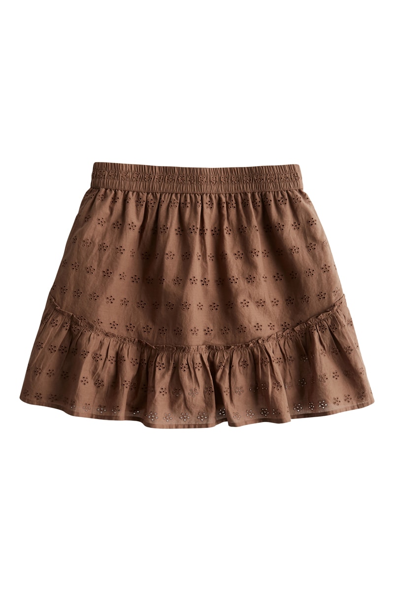 Falda evasé con bordado inglés - Marrón