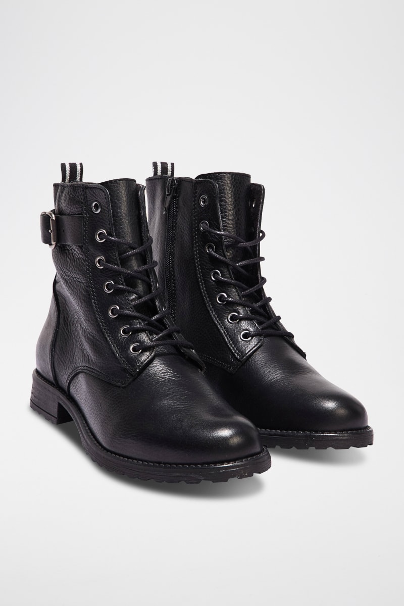 Cierre de cordones delante y de cremallera en el lateral interior.