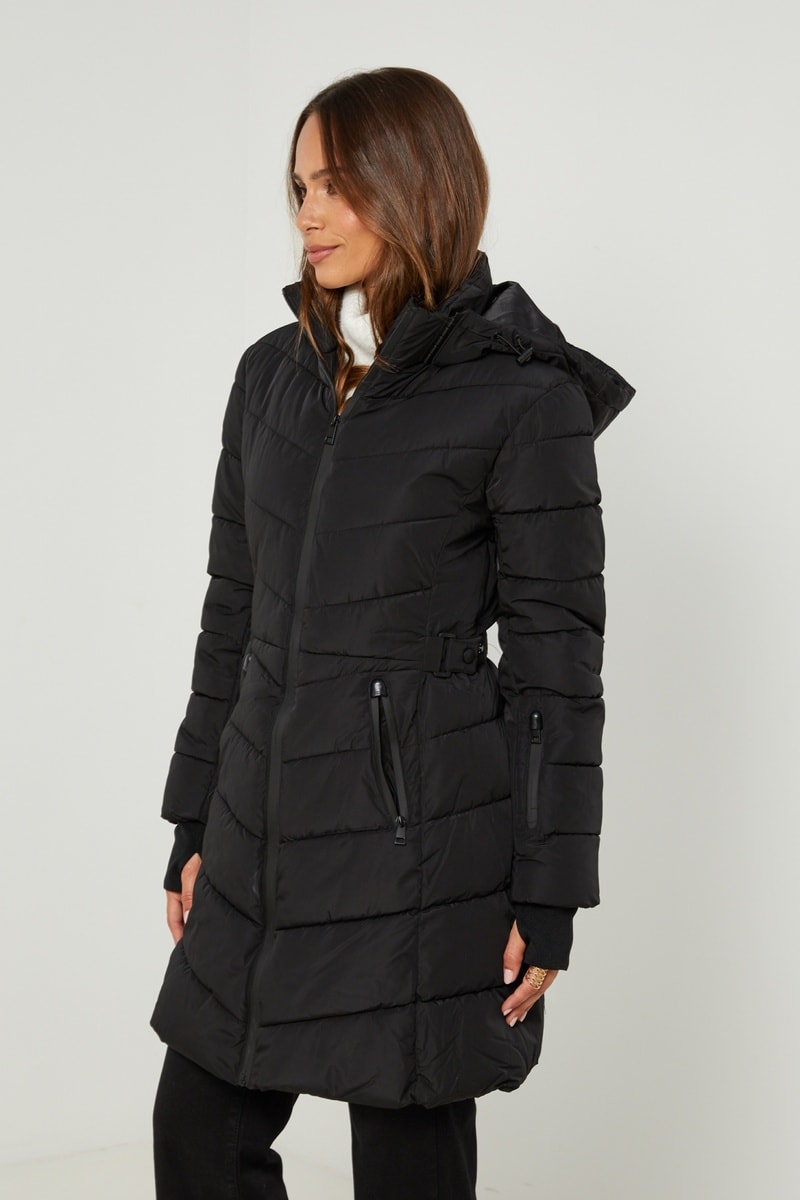 Anorak con capucha extraíble con tiras de ajuste y topes.