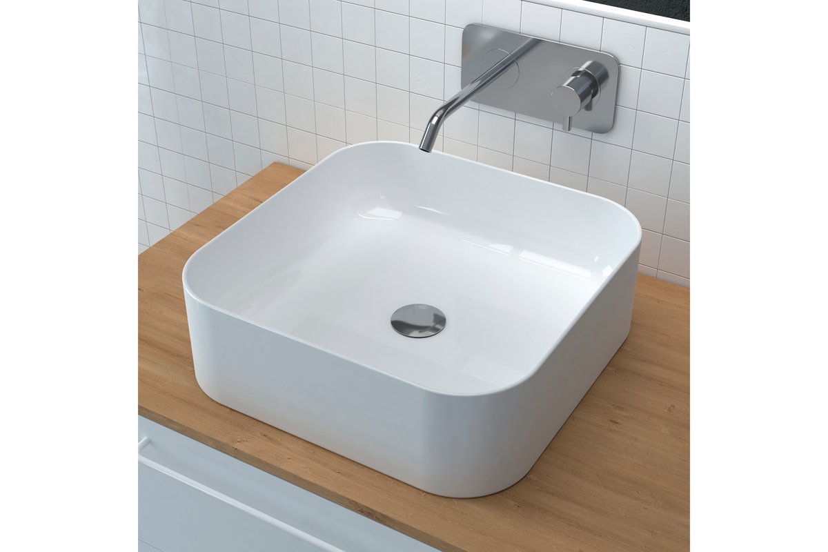 Lavabo cuadrado de cerámica de encimera.
