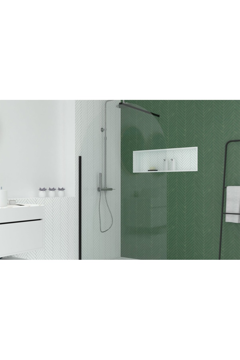 La barra de sujeción de aluminio con acabado negro mate se extiende de 70 a 100 cm para que la mampara se ajuste mejor a tu ducha.
