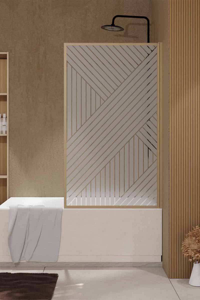 Las líneas rectas que se cruzan en la mampara de bañera Hinata crean un juego sutil de luces y sombras, añadiendo una dimensión artística a tu espacio.