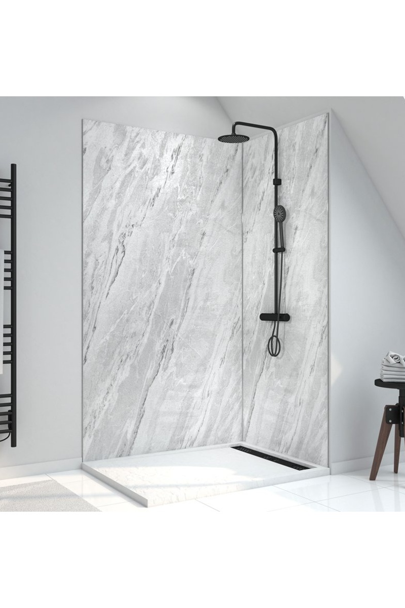 Panel de pared de ducha Stone'it con perfiles - Gris - 120 x 210 cm