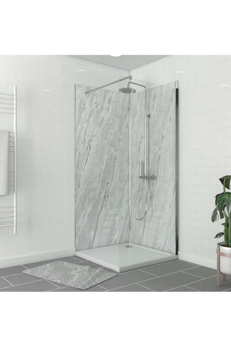Pack de 2 paneles de pared de ducha y perfiles - Cromado - 210 x 90 cm