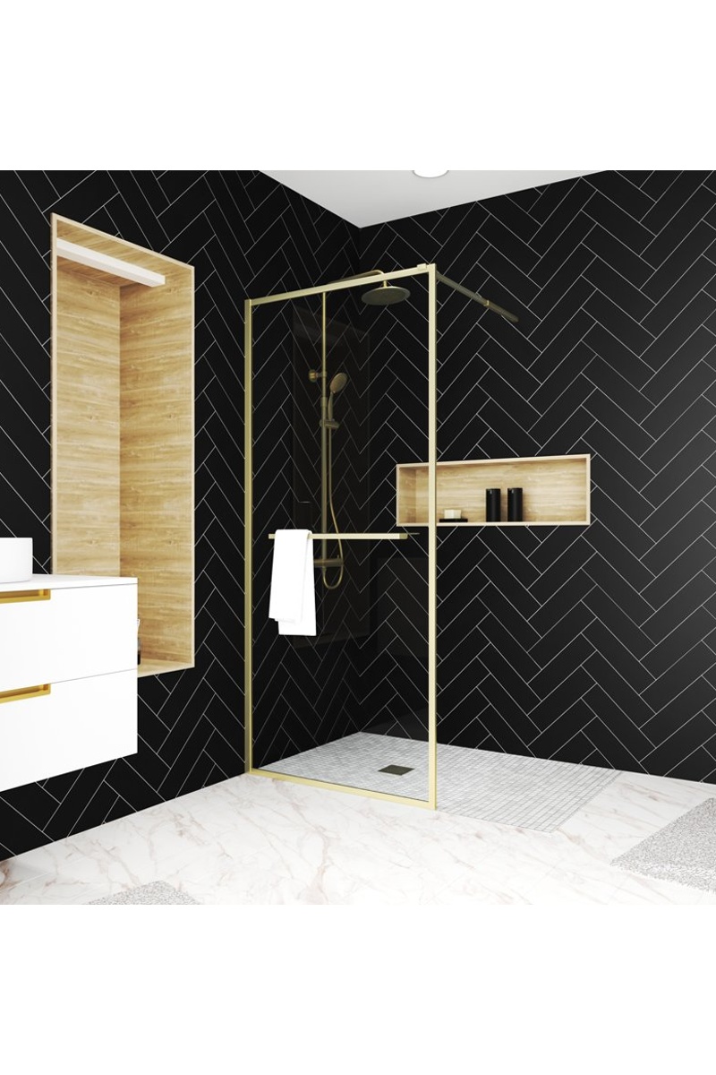Mampara de ducha italiana con toallero y estantería - Dorado cepillado - 90 x 200 cm