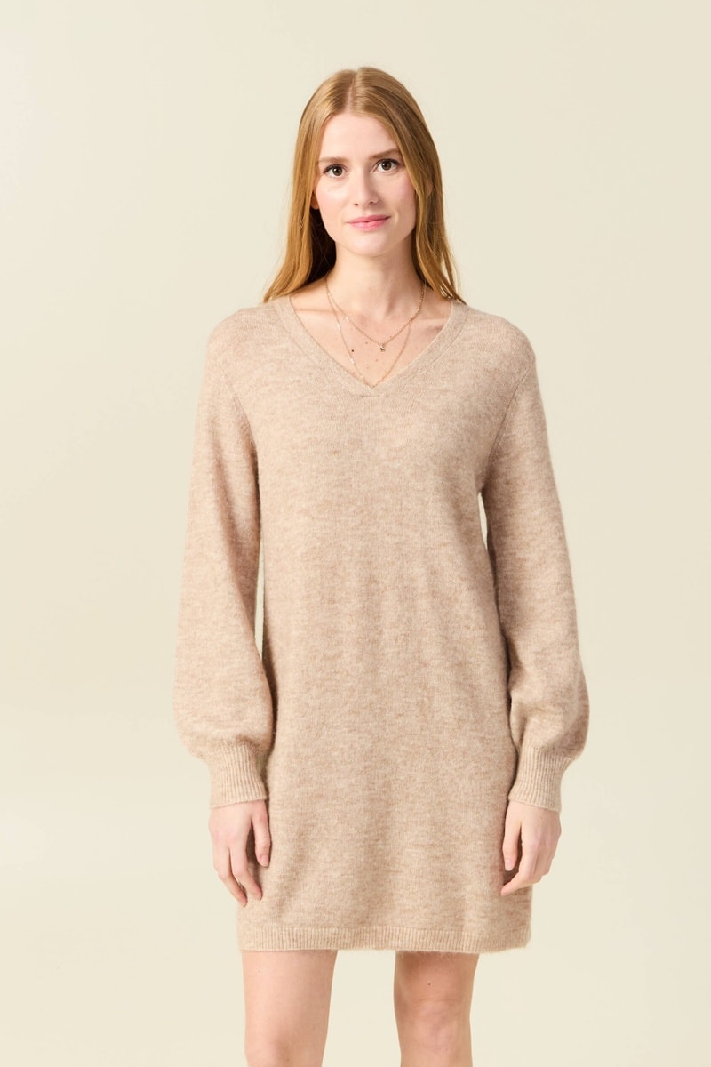 Vestido jersey de lana y mohair - Topo