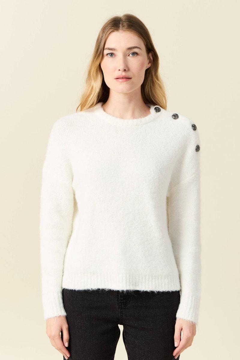 Cierre de botones en el hombro izquierdo.
