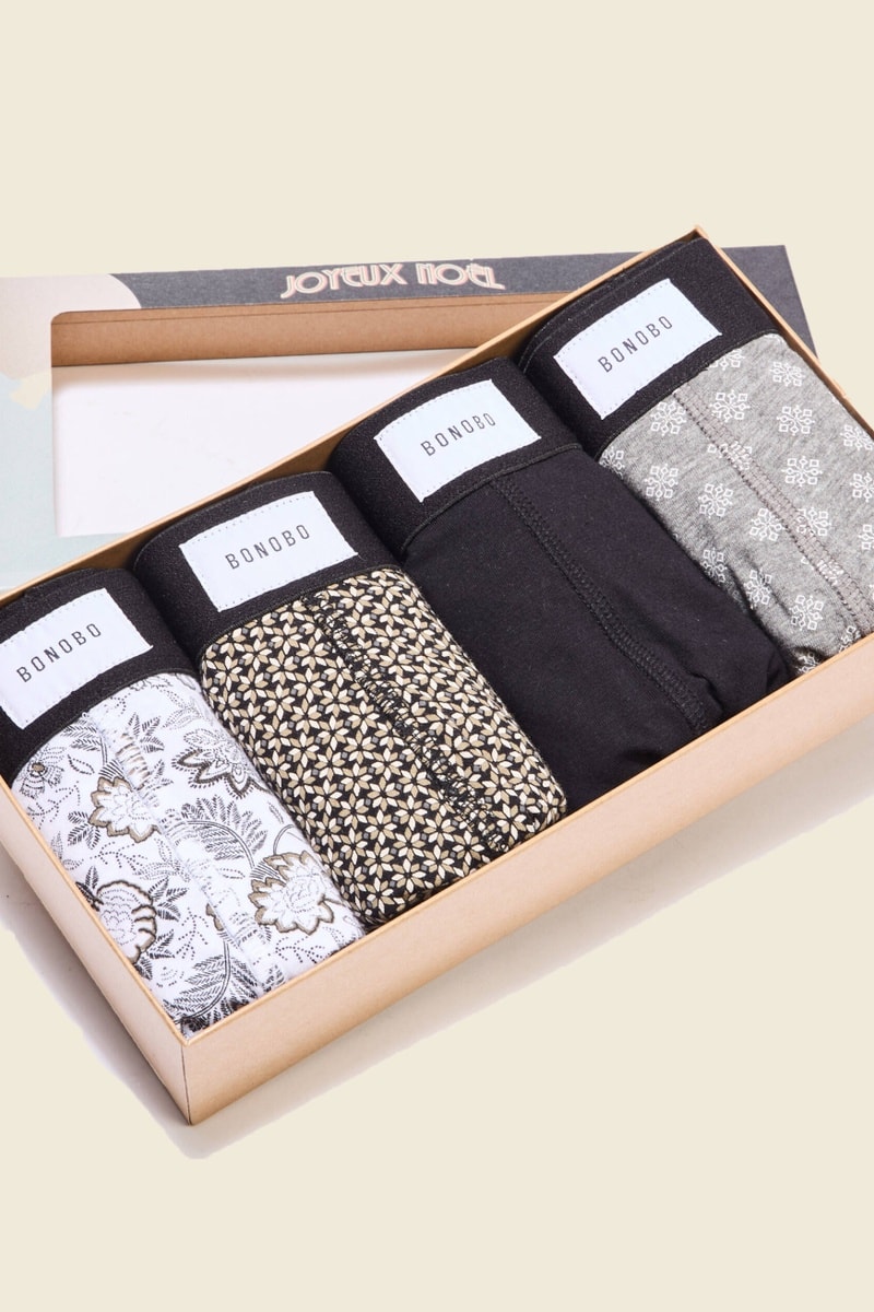 4 bóxers de algodón orgánico mezclado, 2 de ellos con estampado de fantasía y 1 con estampado de flores.