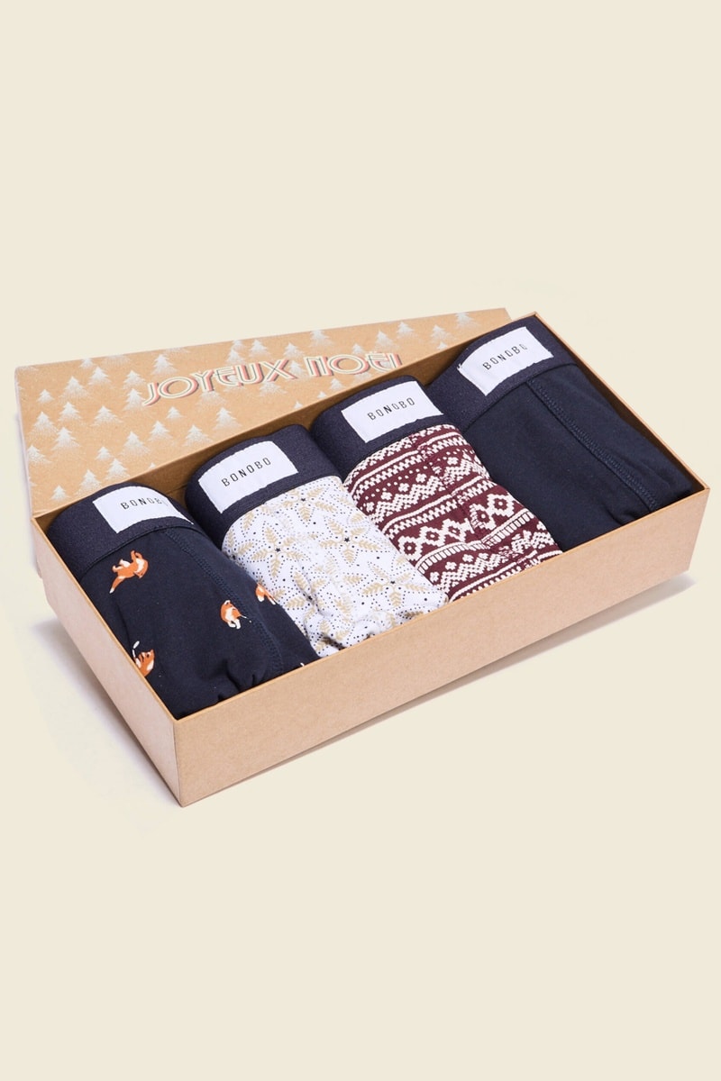 4 bóxers de algodón orgánico mezclado, 3 de ellos con estampado de fantasía.