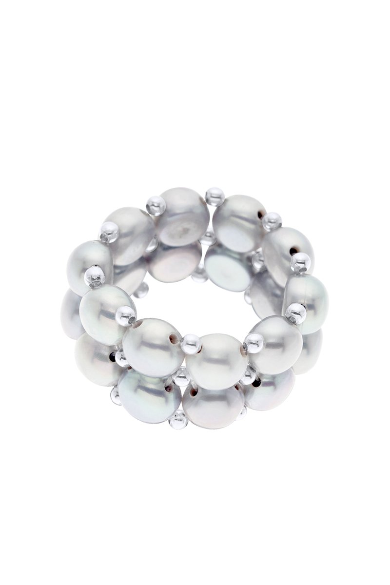Anillo elástico con perlas cultivadas de agua dulce.