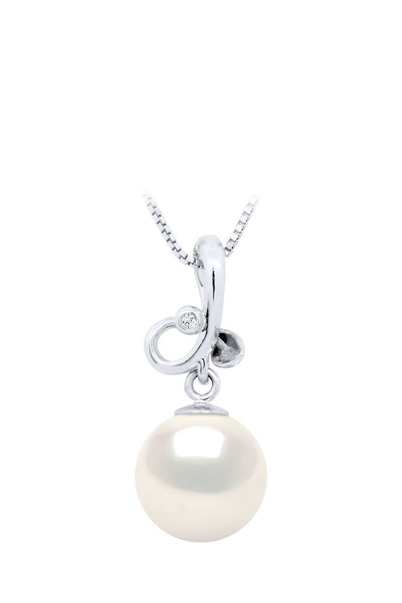 Colgante - Oro blanco, perla cultivada de agua dulce y diamante