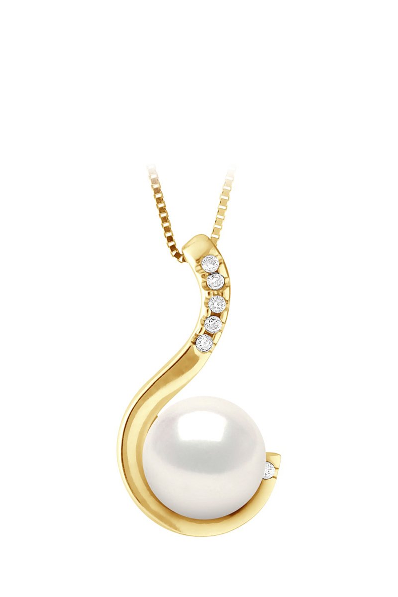 Colgante - Oro amarillo, perla cultivada de agua dulce y diamantes