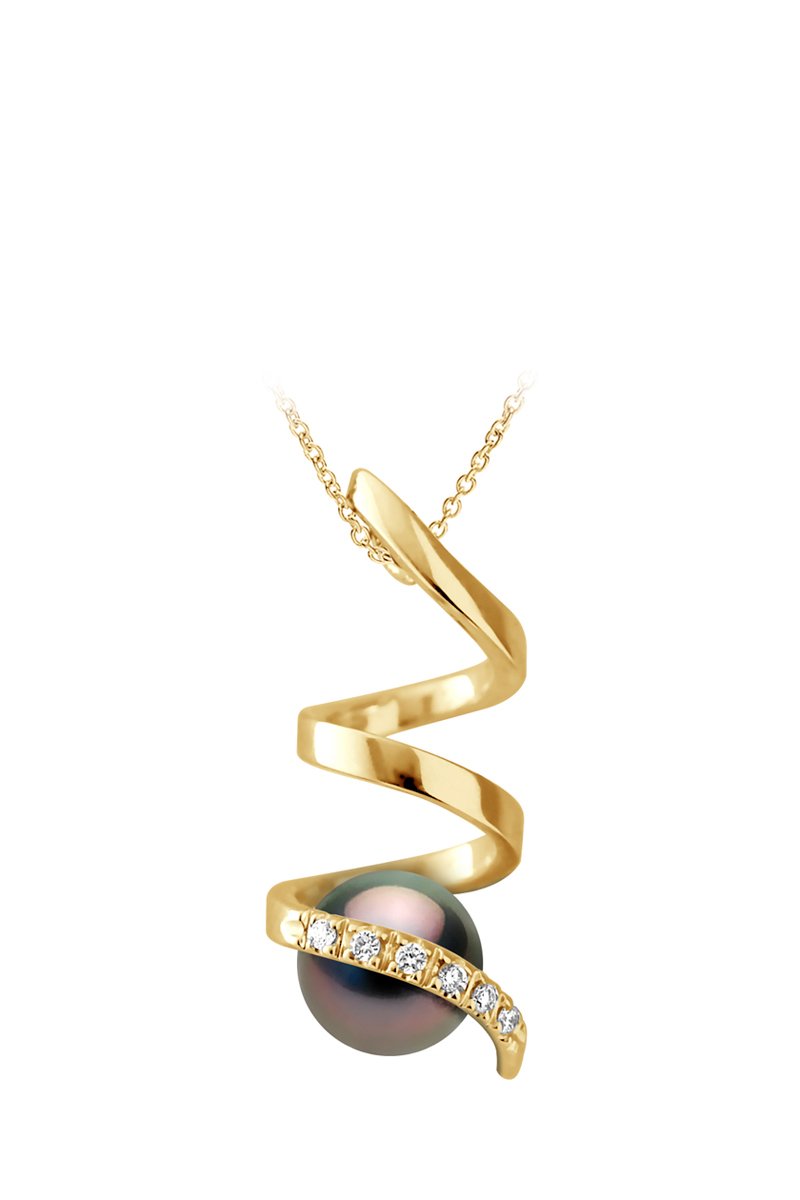 Colgante de oro amarillo con una perla cultivada y 6 diamantes.