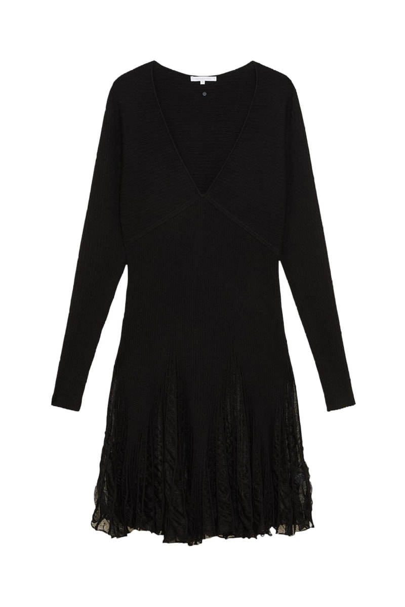 Vestido evasé de manga larga.