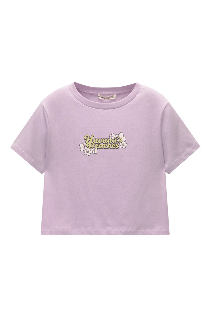 Texto y estampado de flores en la parte delantera.