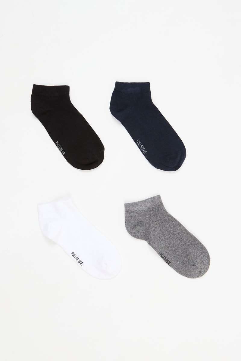 4 pares de calcetines cortos - Negro, gris, azul y blanco