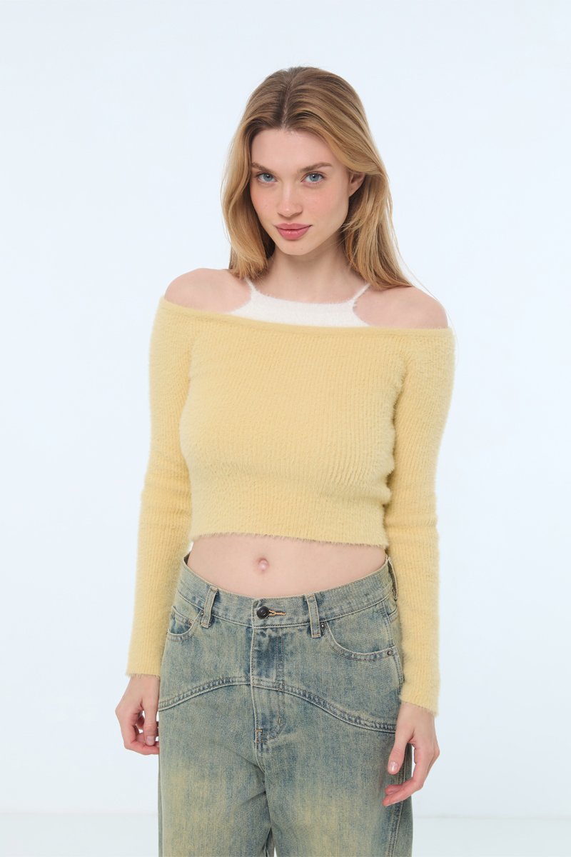 Jersey corto efecto doble prenda - Beige