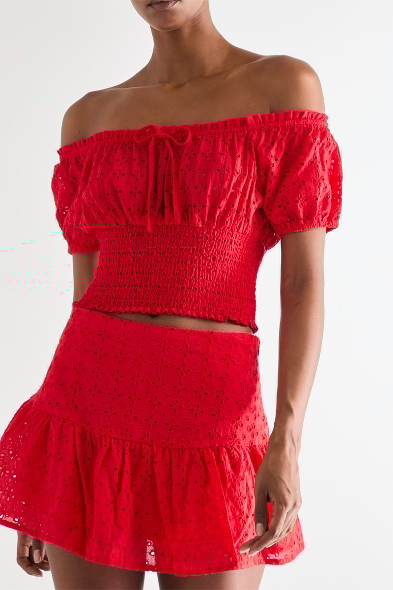 Crop top con bordado inglés - Rojo