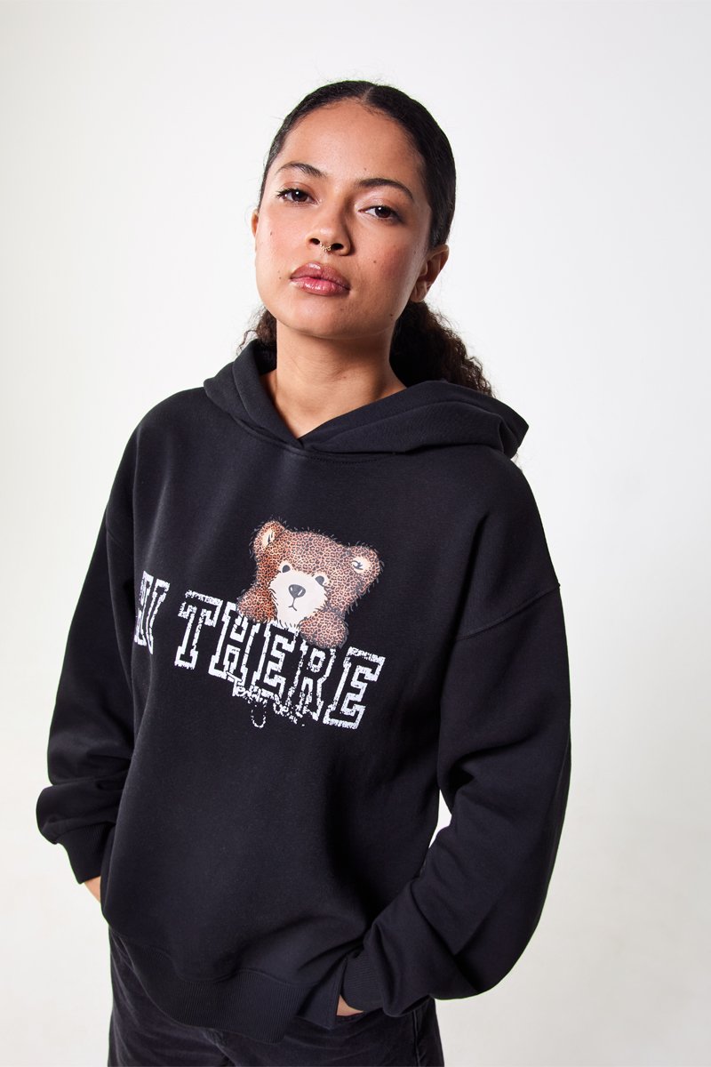 Texto y estampado de oso delante.