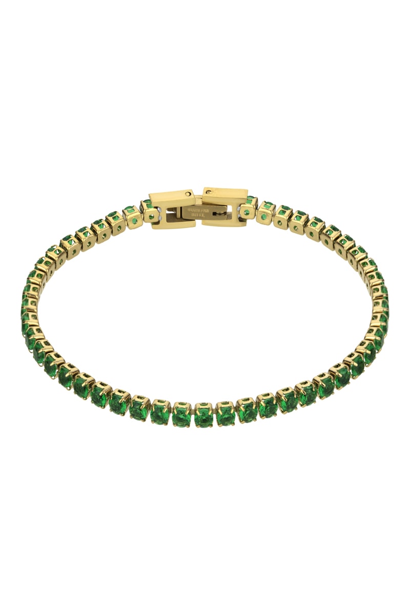Material: acero inoxidable bañado en oro amarillo de 18 quilates y cristales
