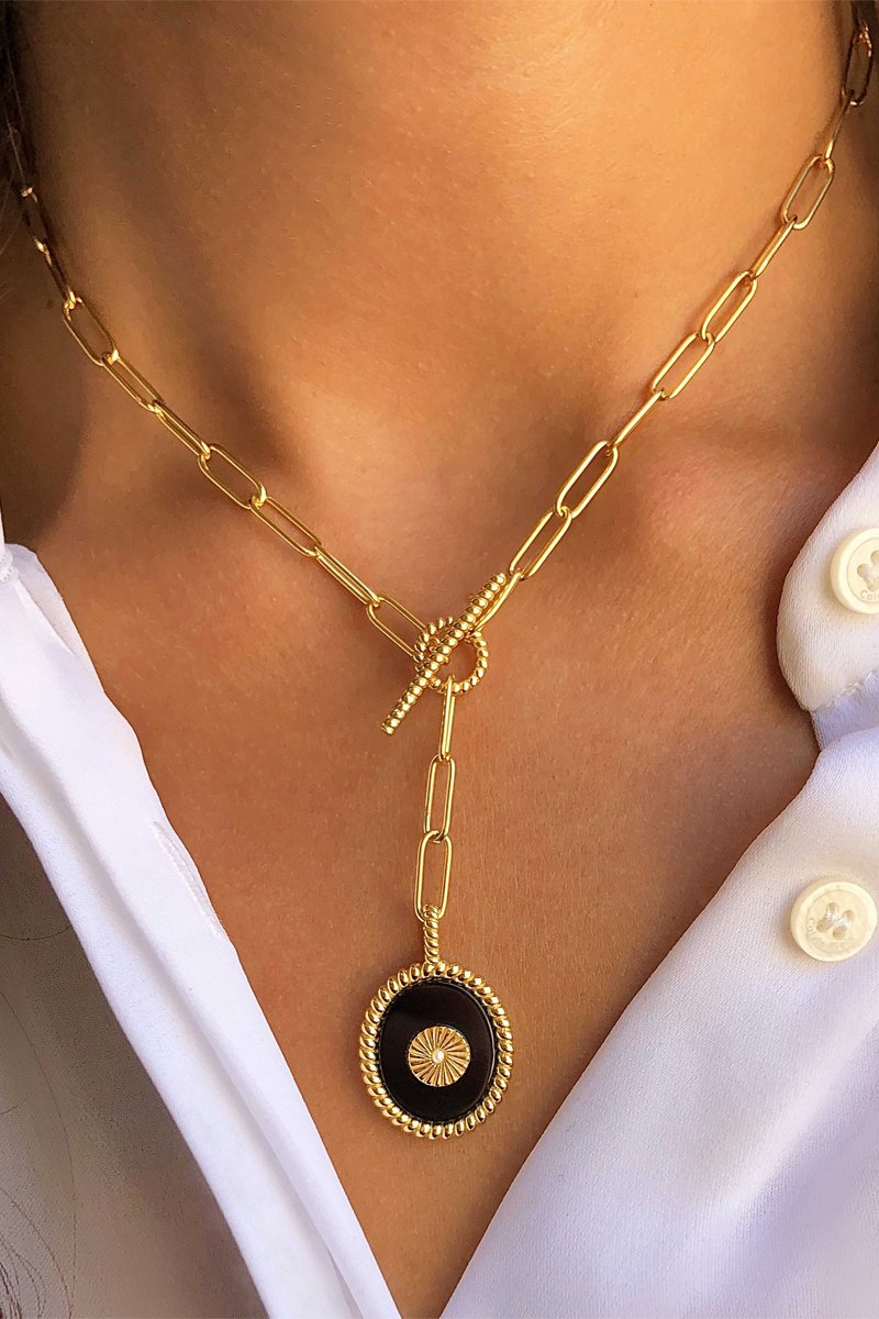 Material: plata 925/1000 chapada en oro amarillo y ónice
