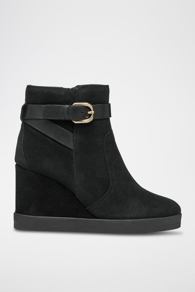 Botines de piel bovina nobuk y piel bovina de cuña.