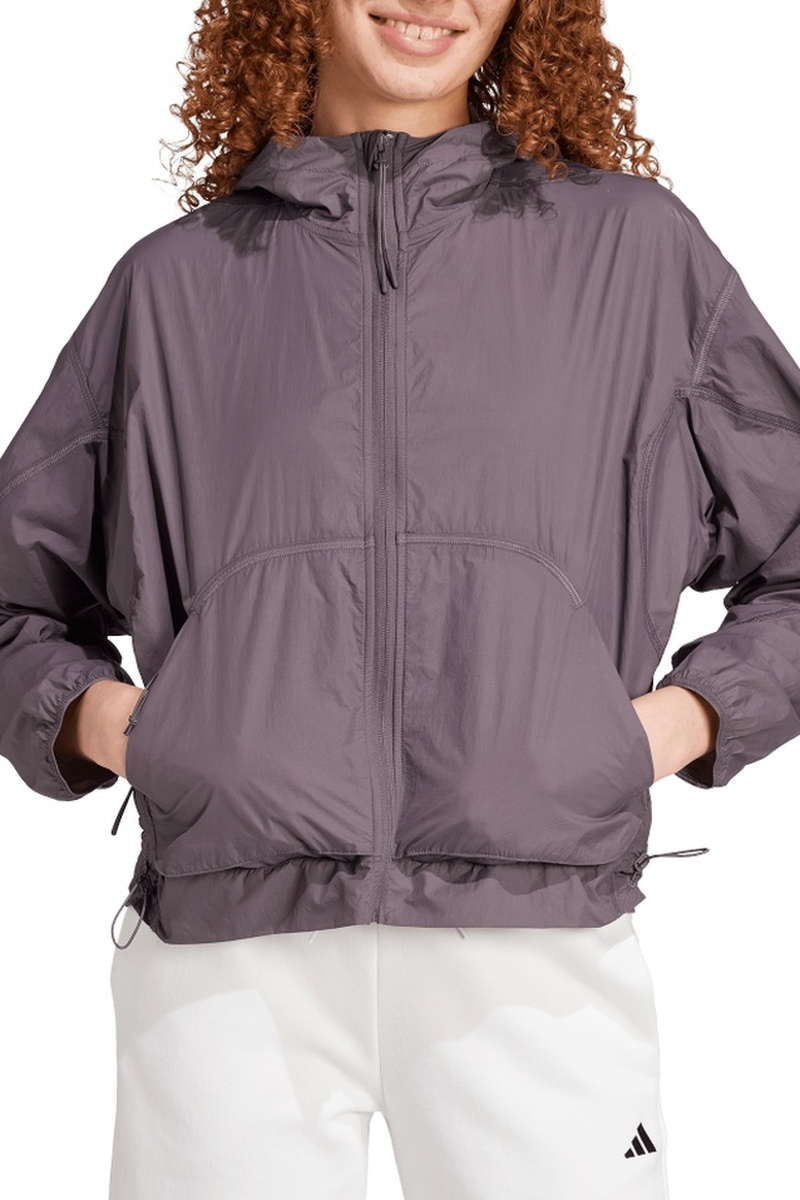 Tiras de ajuste y topes en la capucha y en el bajo.