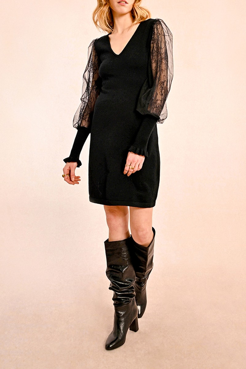 Vestido jersey de manga larga de encaje.