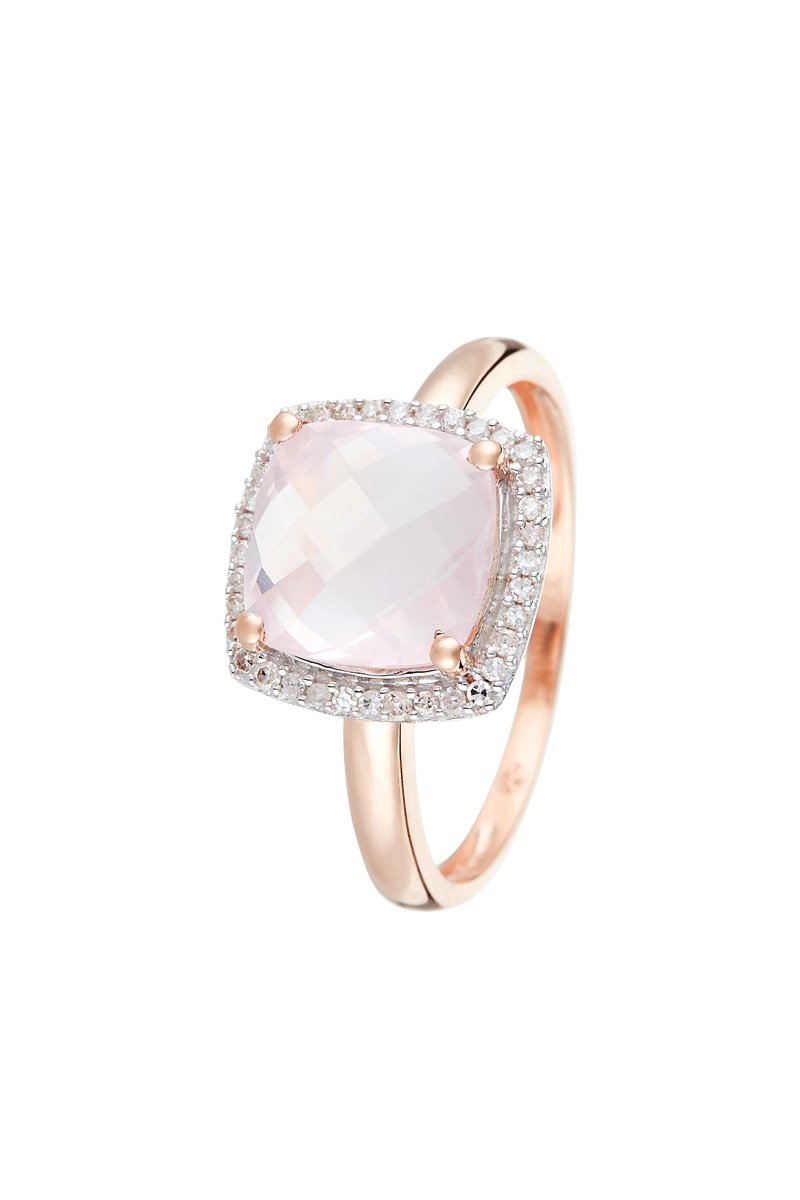 Material: oro rosa 375/1000, diamantes 0,12/36 quilates y cuarzo 2,7/1 quilates