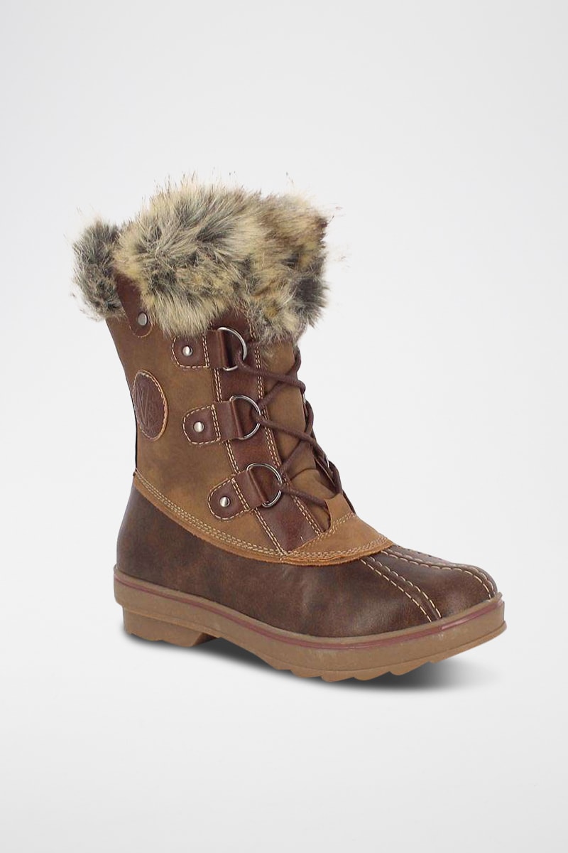 Pelo sintético en la abertura. Cierre de cordones delante y de cremallera en el lateral.